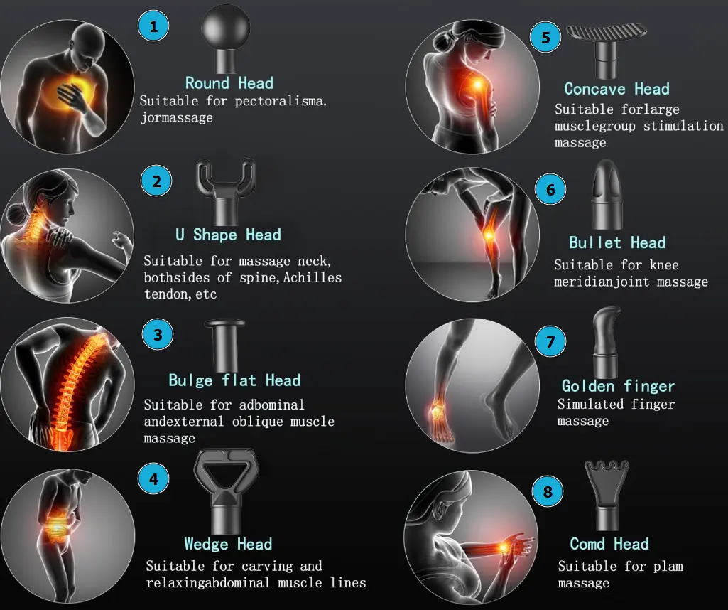 | 8. Comb Head | Suitable for pectoral and arm massage |